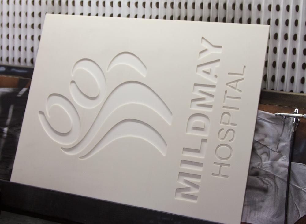 Our new CNC router is starting to earn its keep. Just completed our first order of large engraved corian signs using the CNC. The lettering was then carefully sprayed and the sign then sanded. For more information click here -Â http://www.sign-maker.net/engraved/engraved-signs-corean.htm