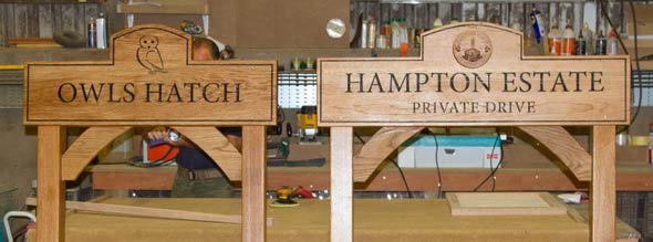 Wooden Signs (don’t forget to add the posts!) -https://www.sign-maker.co.uk/made-to-measure-iroko-house-signs-5375-p.asp
