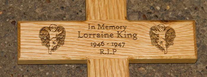 Alternatively, you can mount an engraved plaque on the cross.