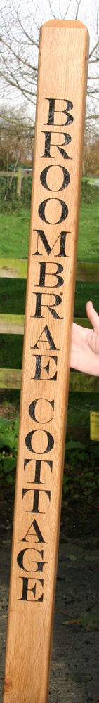 The fingers are normally 100mm or 150mm high. The length is 600mm, 50mm of which is mortised into the post. The lettering is carved into both sides of the finger and painted. You choose the font.